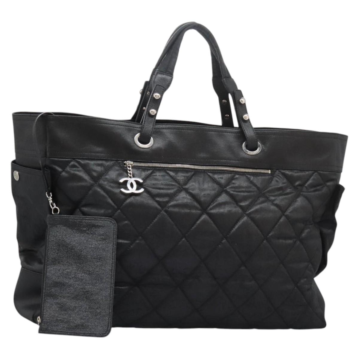 CHANEL Tote Bag Leather Black Silver CC Auth BA8491
