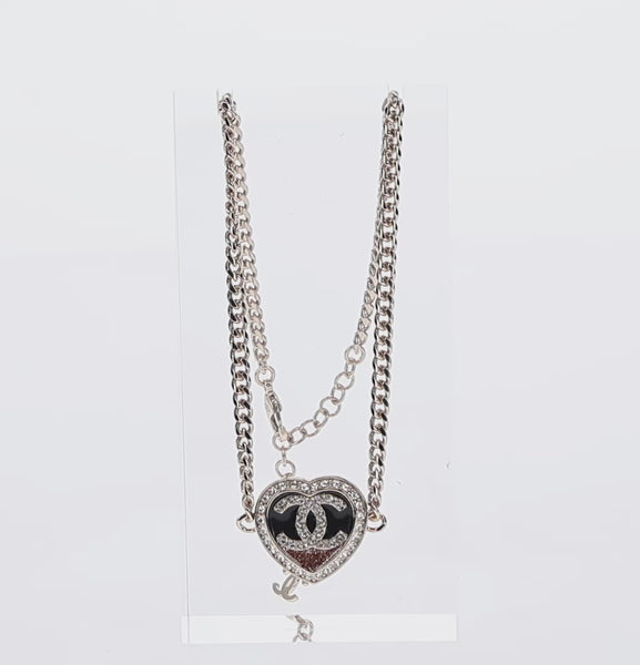 CHANEL Heart Necklace metal Silver CC Auth BA7561M