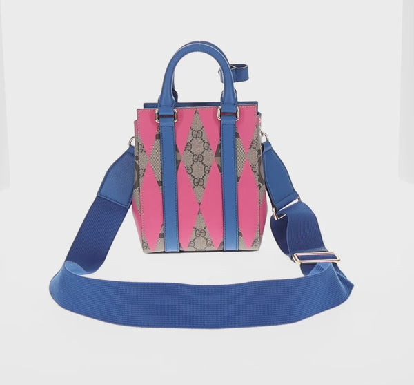 GUCCI GG Supreme Hand Bag PVC 2way Beige Blue Auth 154072SAM