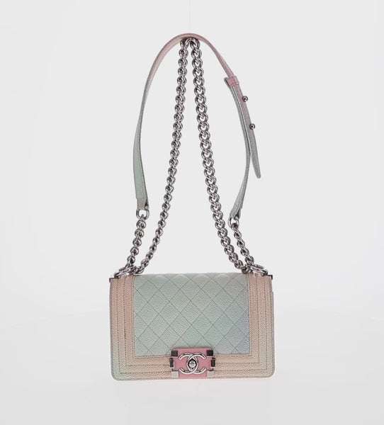 CHANEL Chain Boy Chanel Shoulder Bag Caviar Skin Rainbow CC Auth 153621SAM
