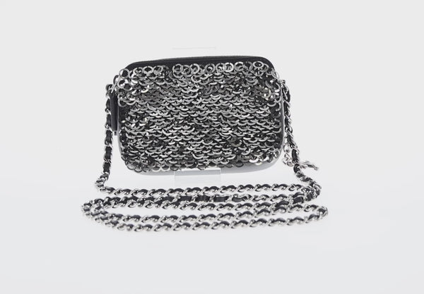 CHANEL Chain Shoulder Bag Sequin Black Silver CC Auth 146554SM
