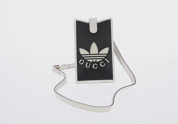 GUCCI×adidas Smartphone Case Shoulder Bag Leather Black 702203 Auth 155331M