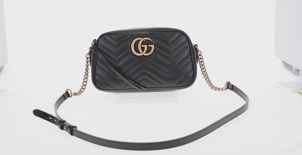 GUCCI Chain GG Marmont Shoulder Bag Leather Black Gold 447632 Auth am9985M