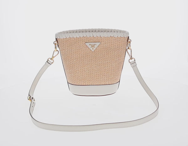 PRADA Shoulder Bag Saffiano leather Raffia Beige Gold Auth 155954SAM