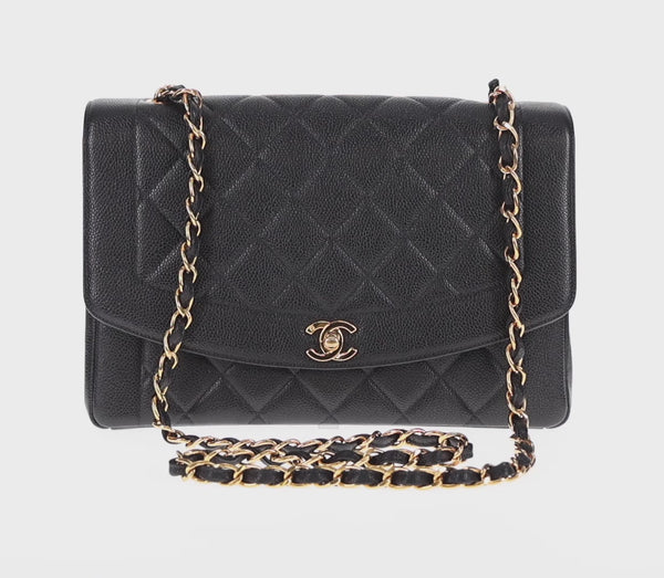 CHANEL Matelasse Diana Chain Shoulder Bag Caviar Skin Black CC Auth 140126SM