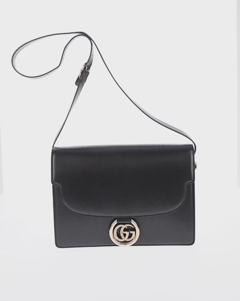 GUCCI GG Logo Shoulder Bag Leather Black Gold 589471 Auth 144672M