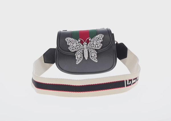 GUCCI Totem Butterfly Web Sherry Line Bag Leather Black 505387 Auth 153330SAM