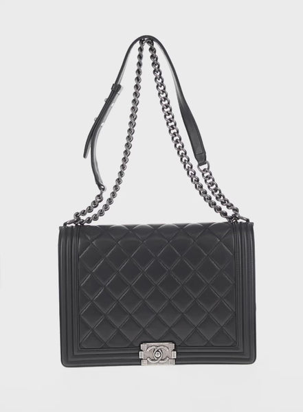CHANEL Chain Boy Chanel Shoulder Bag Lamb Skin Black CC Auth 154052SAM