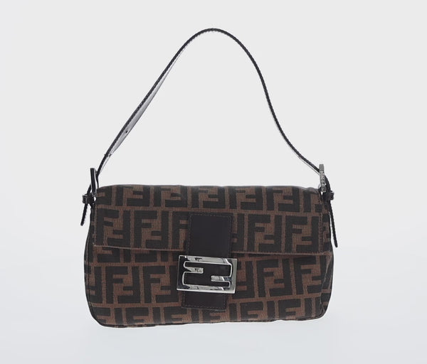 FENDI Zucca Canvas Mamma Baguette Shoulder Bag Black Brown Auth 156651SAM