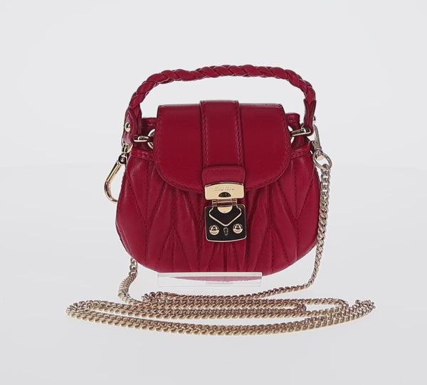 Miu Miu Matelasse Chain Shoulder Bag Leather Red Gold Auth 128161M