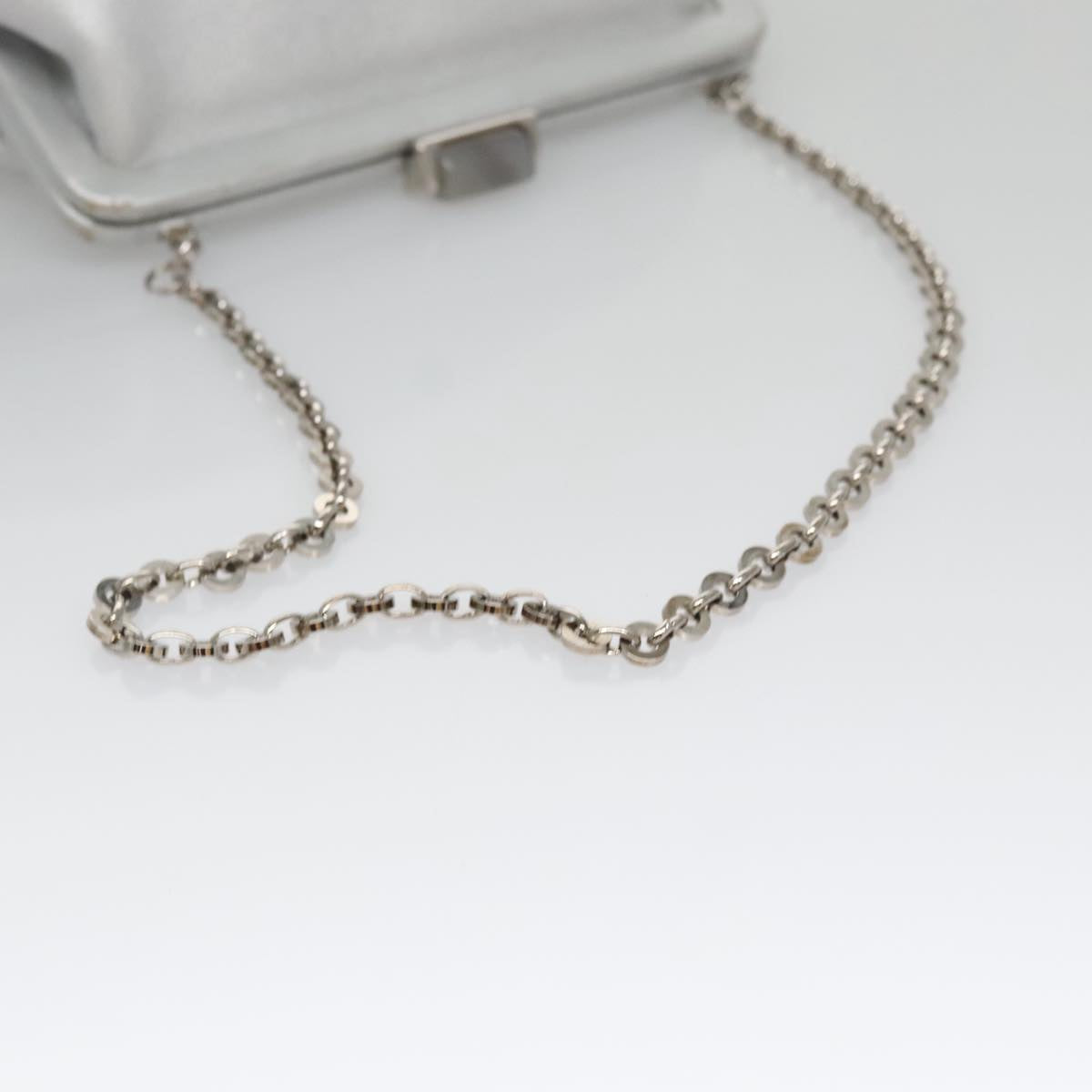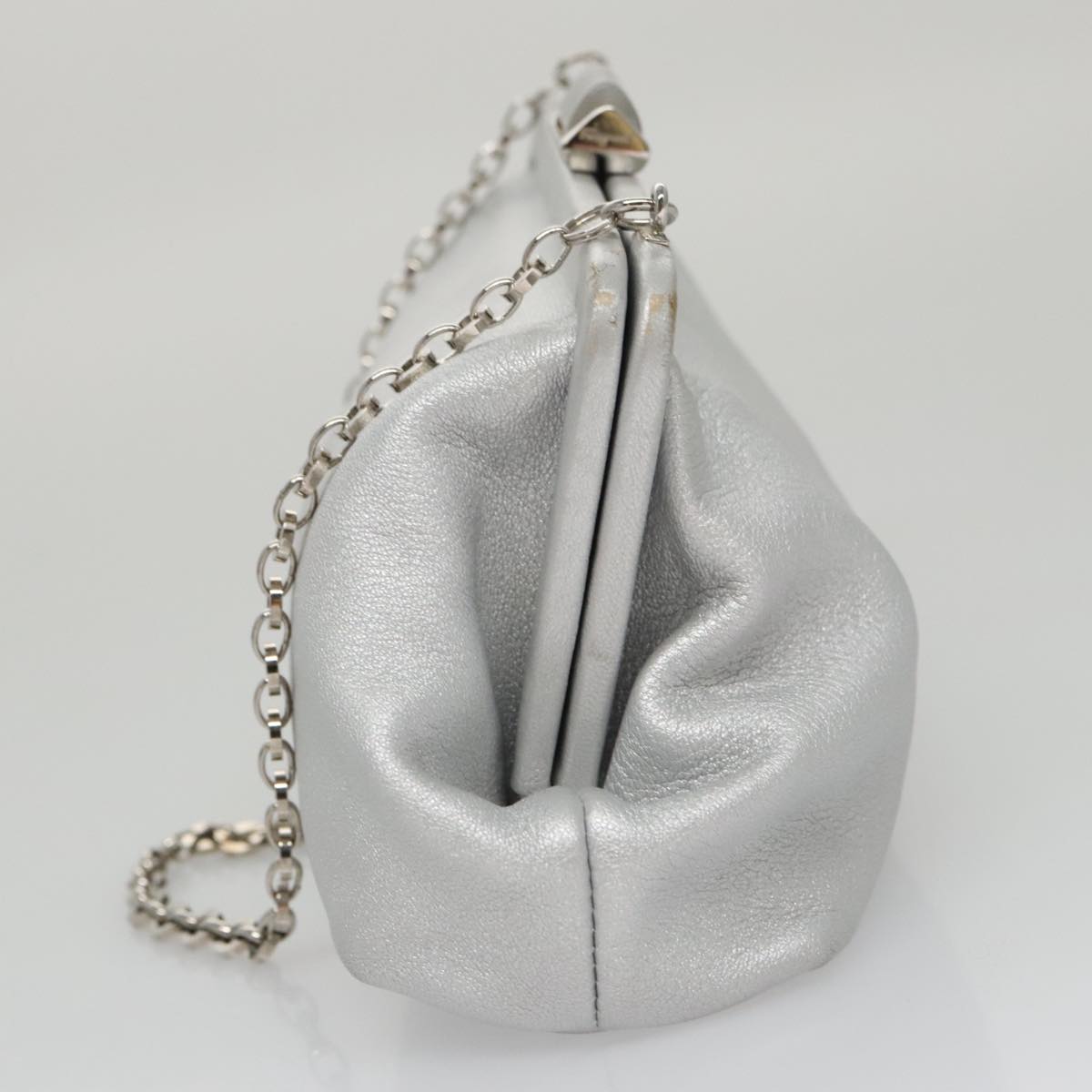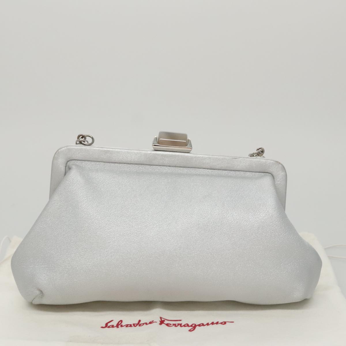 Salvatore Ferragamo Chain Gamaguchi Shoulder Bag Leather Silver Auth 104397